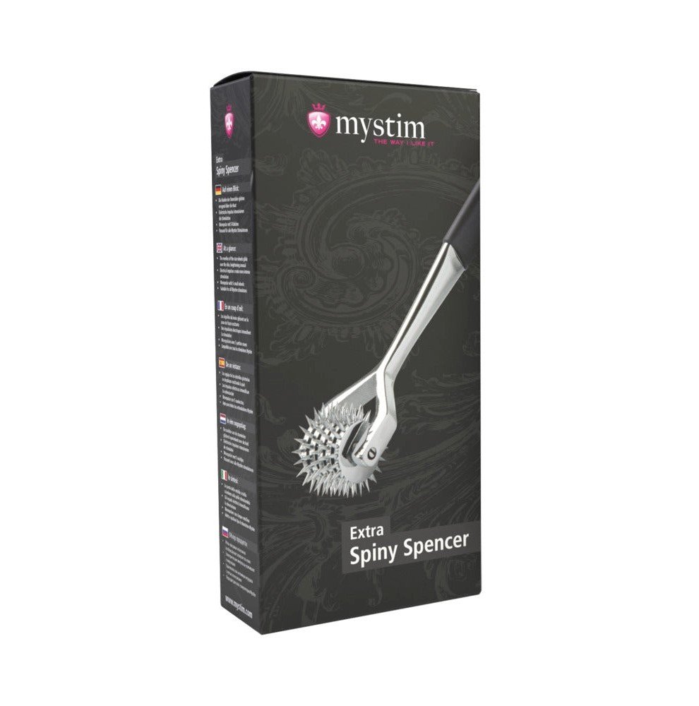 Spiny Spencer is a monopolar e-stim toy with small wheels that provide gentle to intense stimulation to all body parts. It impresses with over 100 spikes spread on 5 wheels made from steel so it always hits the right spot.