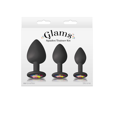 Enjoy backdoor bling with Glam’s three-piece set of bejeweled silicone plugs. Elegantly crafted each is shaped for comfort and fun and adorned with a sparkling rainbow gem. Suitable with all lubricants. COLOR: BLACK