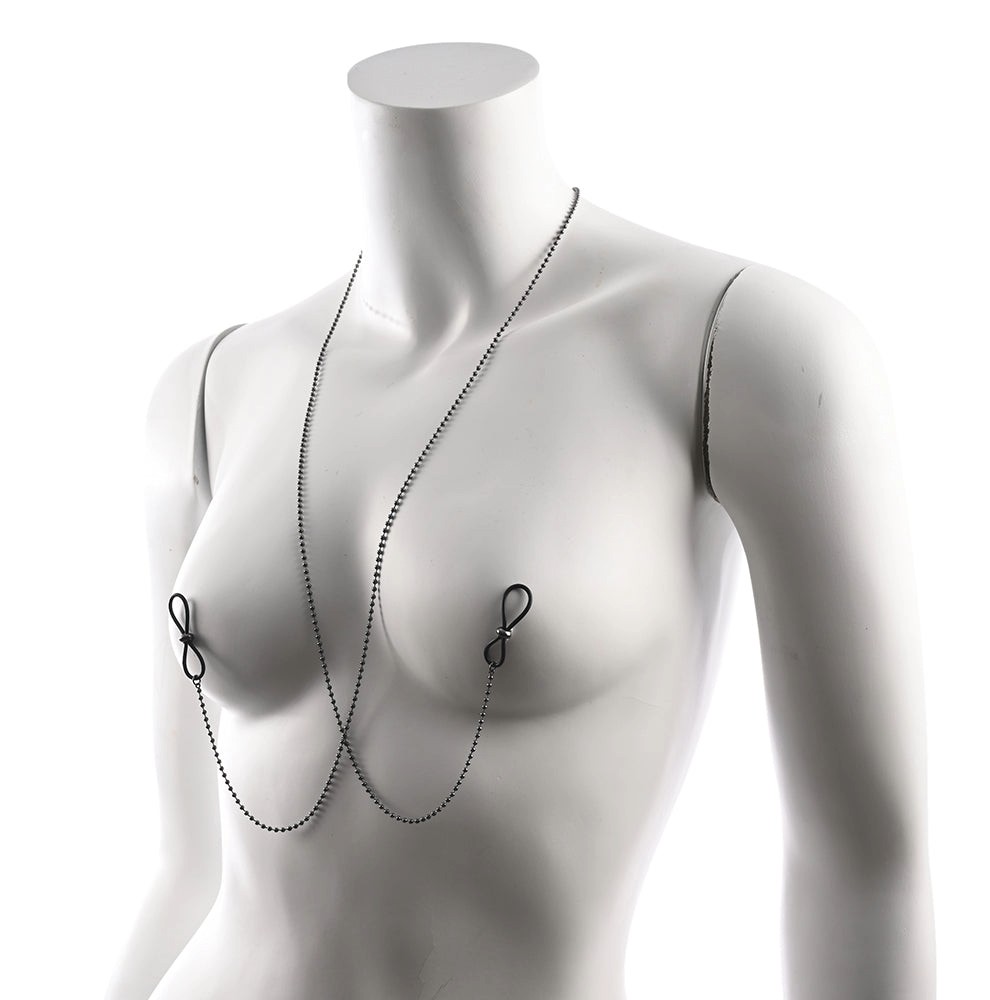 Unleash your adventurous side with the Ex's & Oh's Body Jewelry with Nipple Ties–a daring fusion of jewelry and intimate play. Crafted with sleek gunmetal beading this sensual piece features a lariat-style back with a sliding bolo mechanism that allows for effortless adjustability ensuring a perfect fit for many sizes without the need for clasps. Worn discreetly under clothing the body jewelry's attached nipple ties offer tantalizing sensory exploration. Perfect for the kinky the curious and the voyeuristic this versatile accessory lets you take the excitement outside the bedroom adding a spark of thrill to your every encounter.
